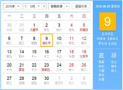 2016端午節(jié)放假安排:2016年6月9日星期四,6月10日星期五,6月11星期六(13.89停牌,買入),共放假3天,提示6月12日星期天正式上班。